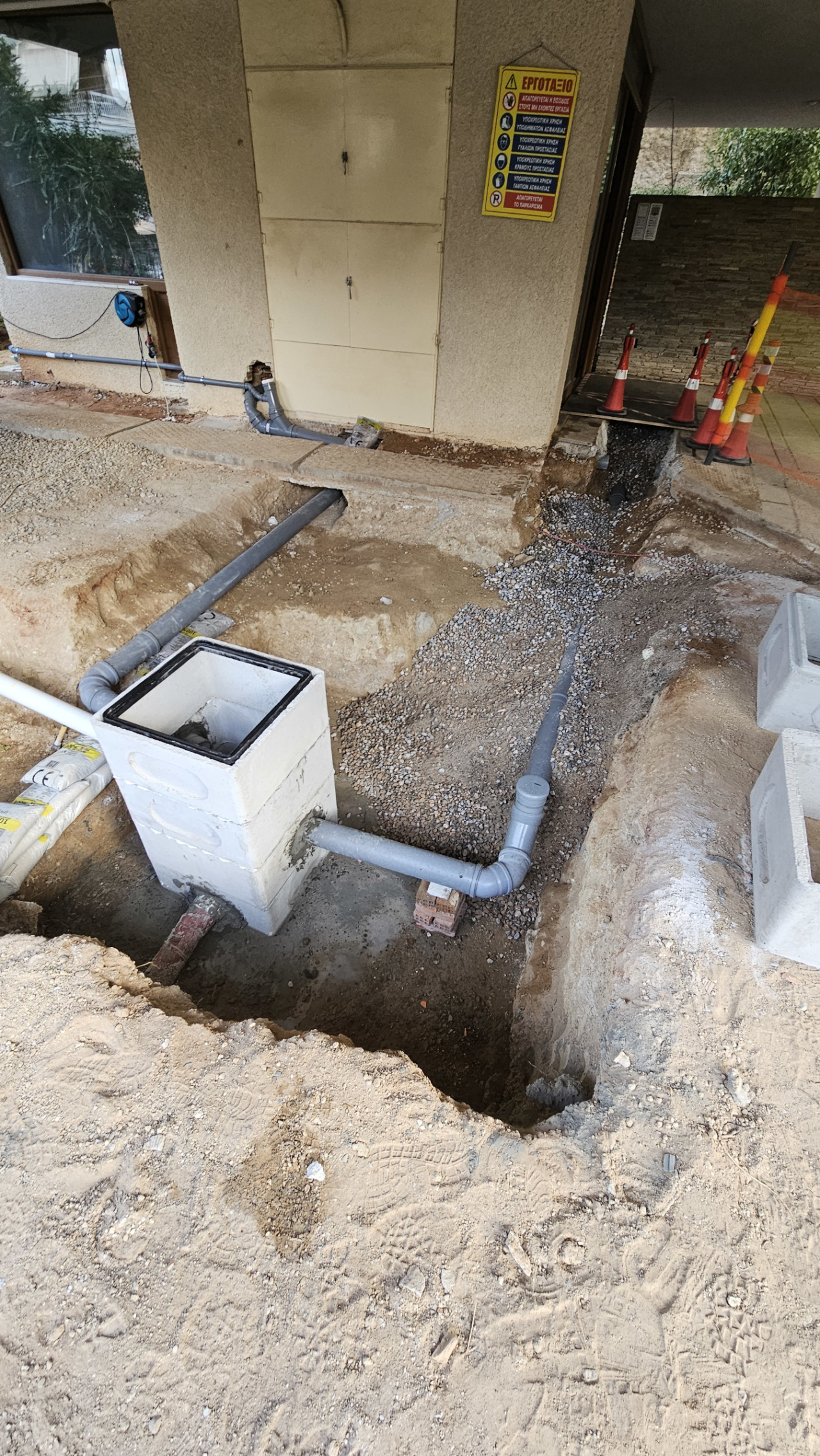 - Κατασκευή νέου κεντρικού αποχετευτικού συστήματος του κτιρίου