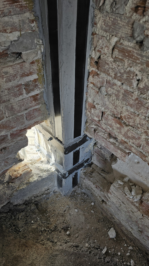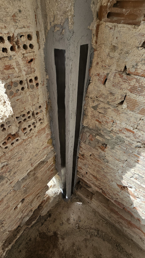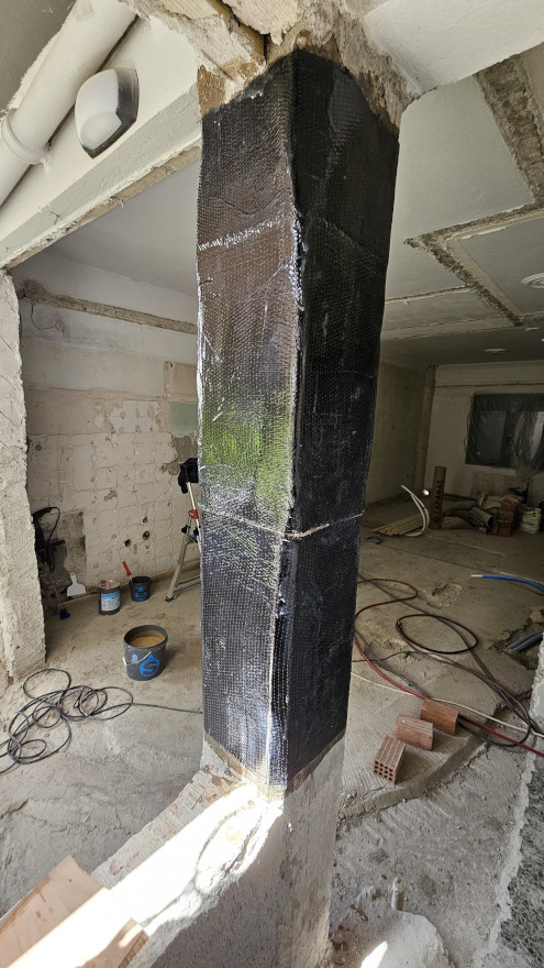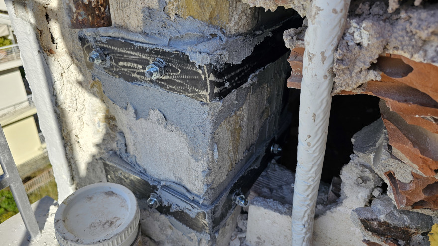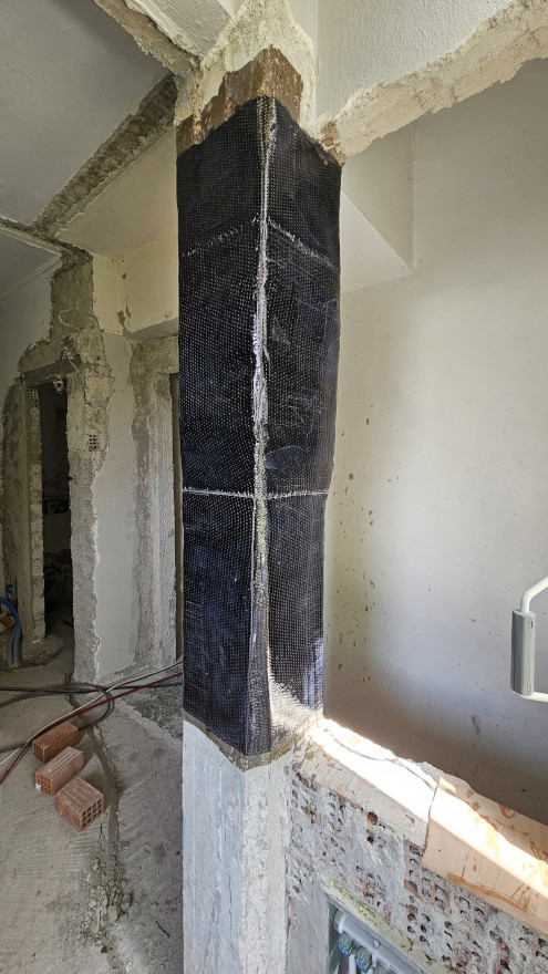 Εφαρμογή Σύνθετων υλικών FRP΄s Ανθρακοελάσματα 50*1,2mm από Σκληρά ανθρακονήματα ενίσχυσης από πολυμερικές ίνες με χρήση ειδικών εποξειδικών ρητινών και εκτονούμενων βυσμάτων